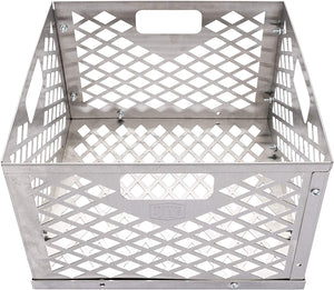A sturdy lower shelf keeps tools, wood, and accessories organized and close at hand for quick access mid-cook.